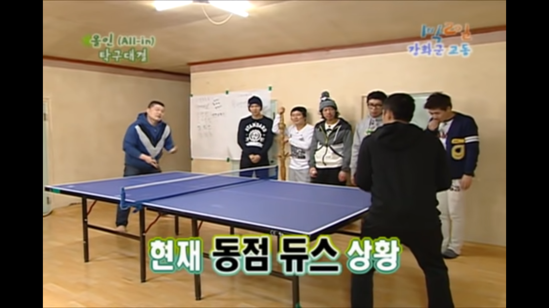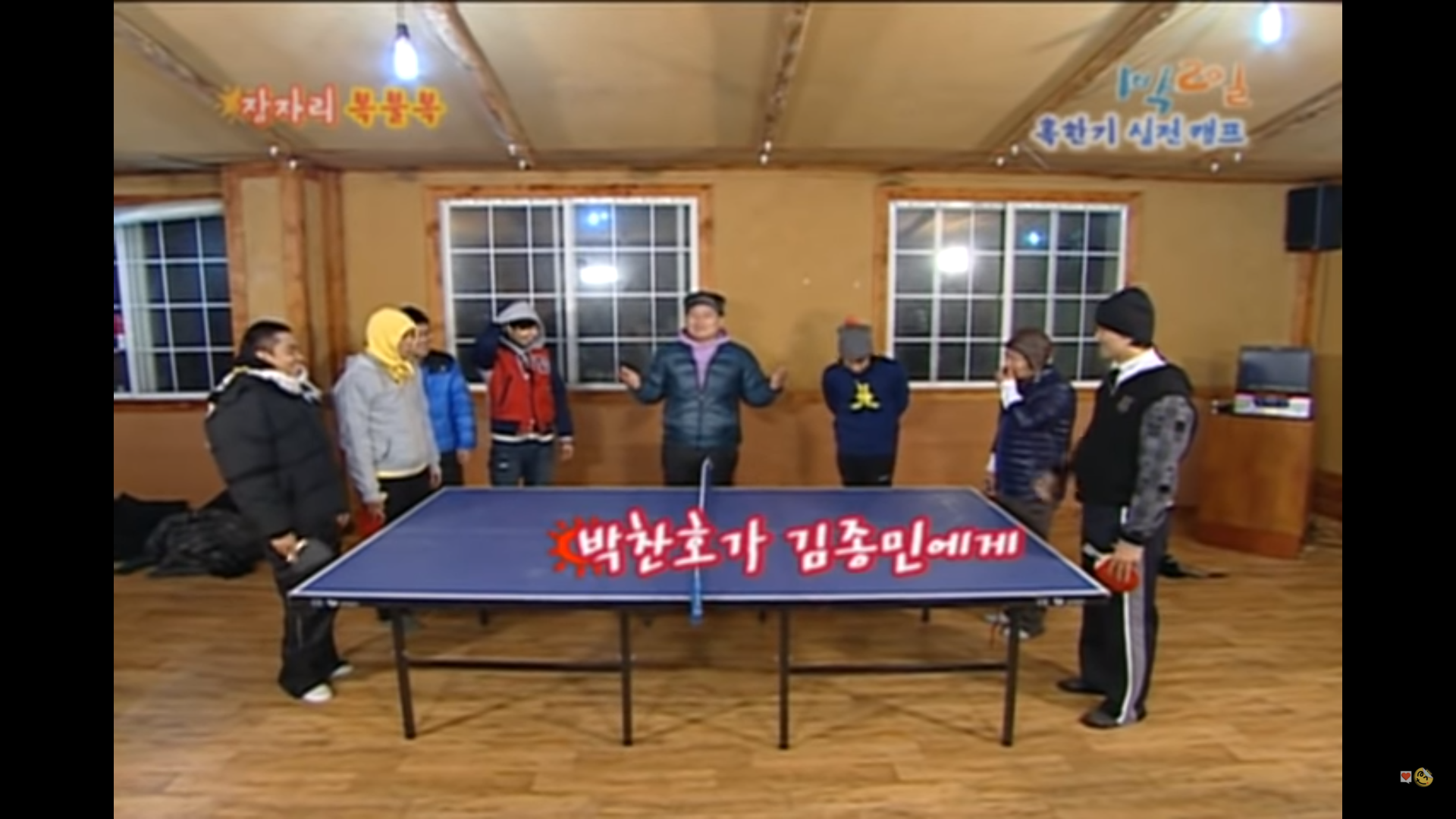 이 편에서는 저녁과 잠자리 복불복을 은지원과 강호동의 탁구 대결로 하는데, 스태프들도 함께 내기에 참가하게 됩니다!