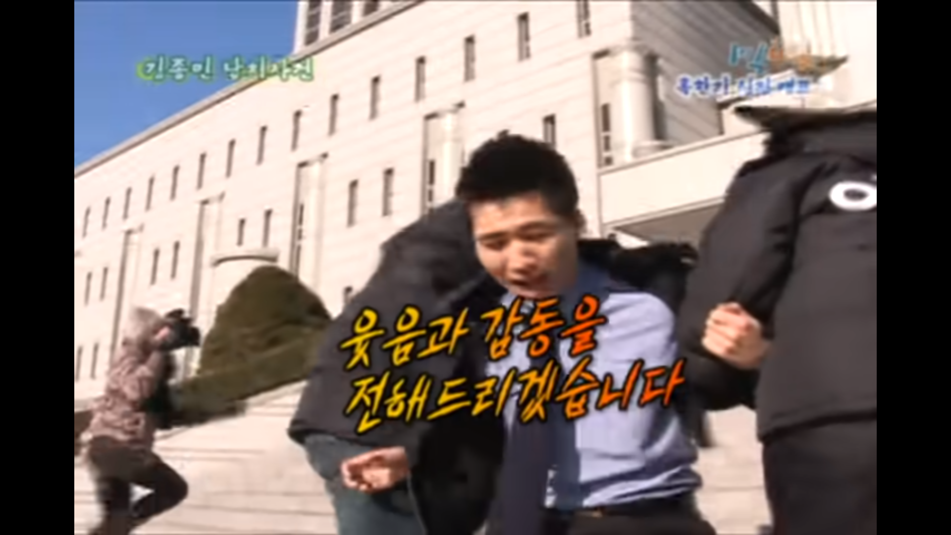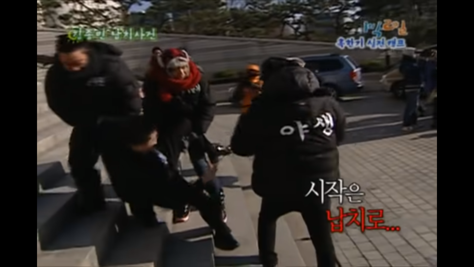 기자회견을 할 때 바로 1박 2일 멤버들이 납치를 해서 촬영을 하는 내용입니다.