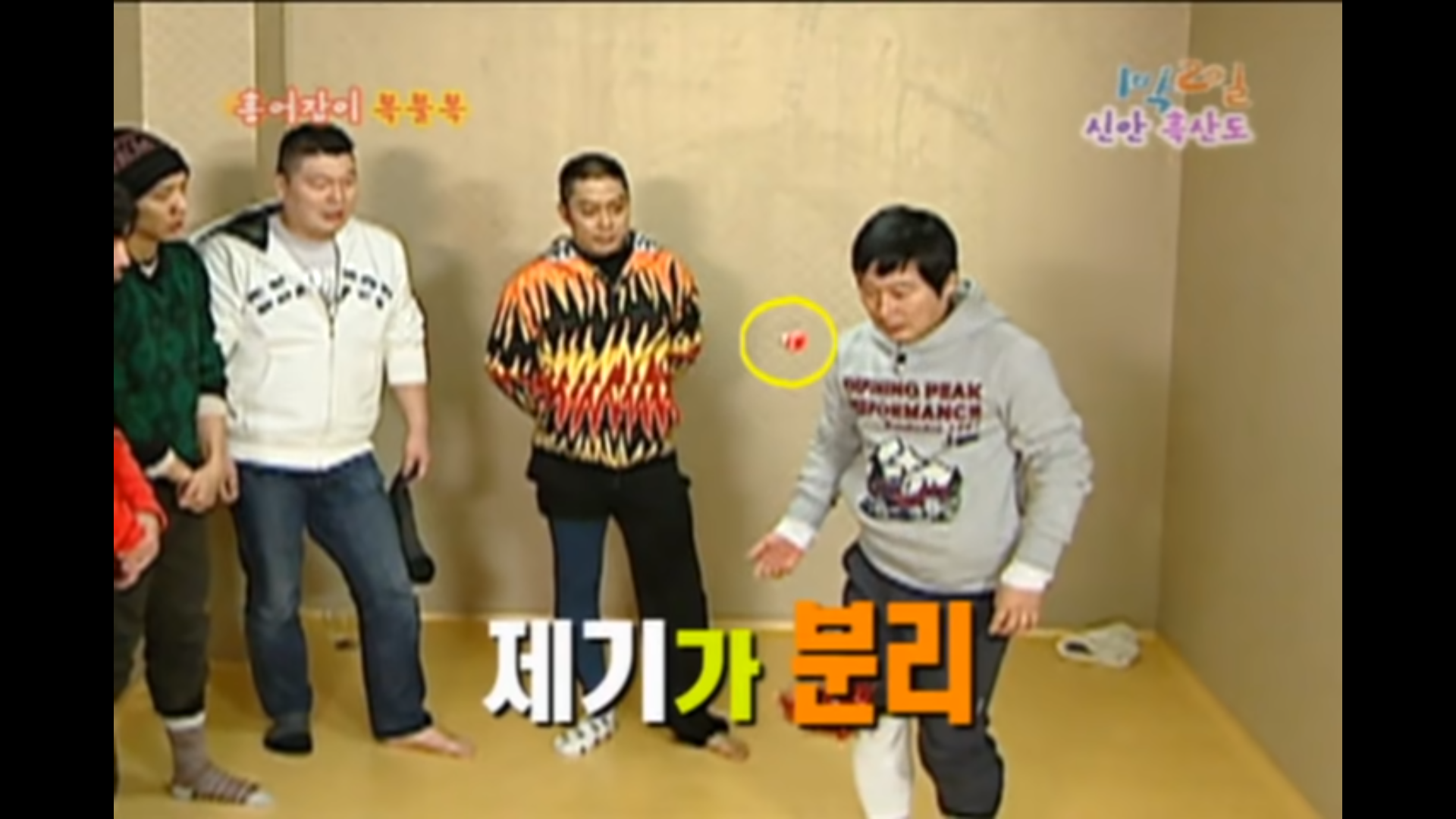다음날 새벽 홍어잡이를 결정할 복불복을 하고, 이수근이 제기차기를 하는데 제기가 분리되어 0개 처리됩니다 ㅋㅋㅋ