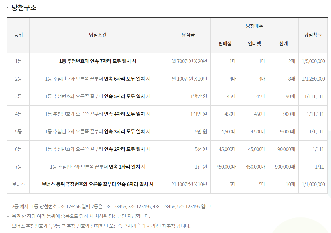 연금복권 720+의 당첨 구조는 이렇습니다!