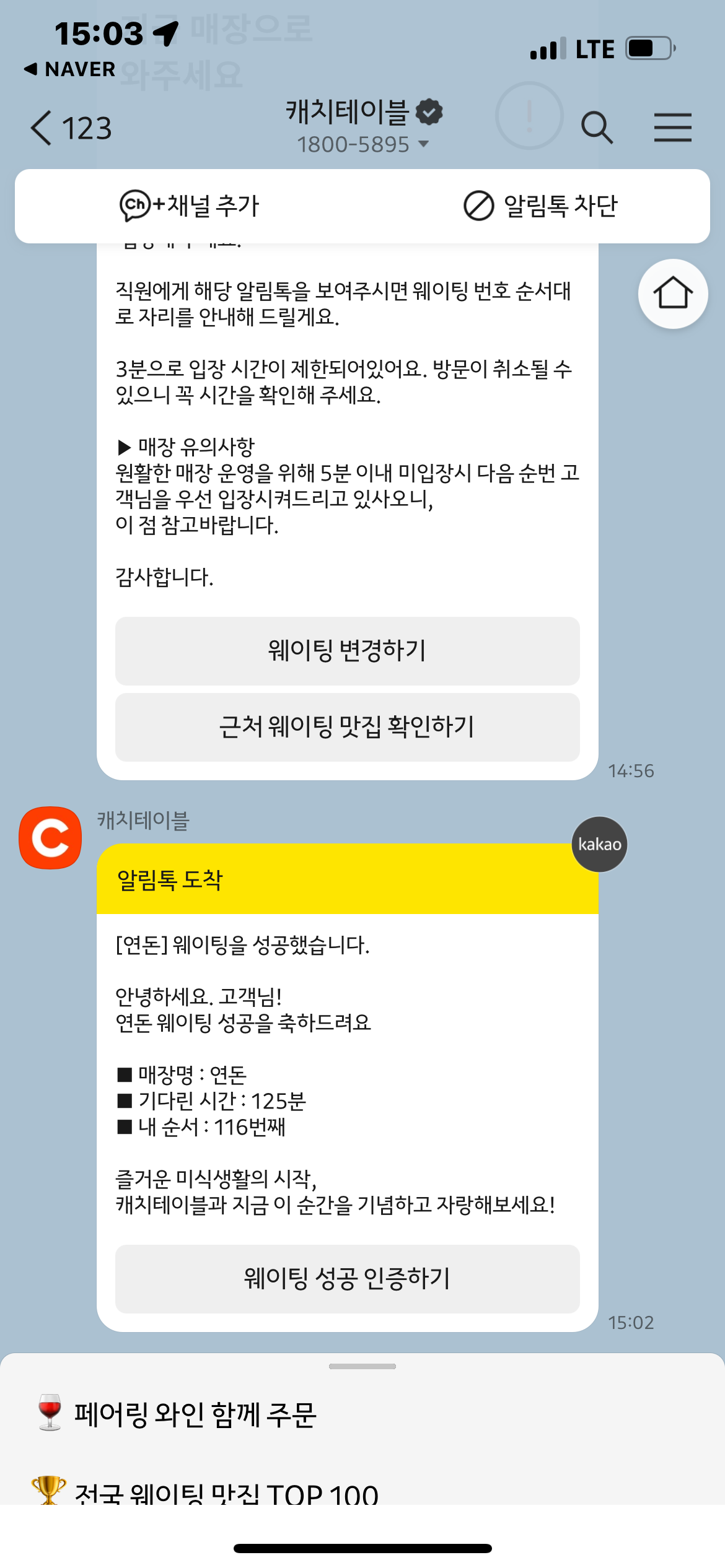 정리하자면 12시 50분쯤 예약걸어놓고 순번은 116번째였고 오후 3시 2분에 들어갔습니다.