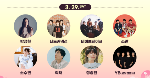 3월 29일에는 박정현, 너드커넥션, 데이브레이크, 소란, 소수빈, 적재, 정승환, YB(윤도현밴드)