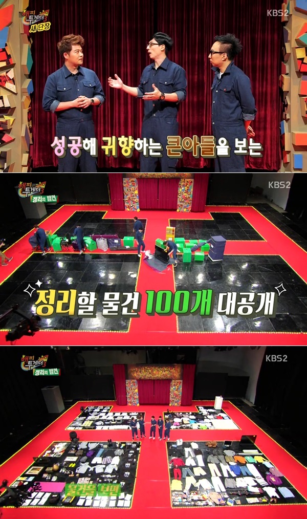 ‘해피투게더’는 9년간 함께한 사우나라는 공간을 버리고 대대적인 개편을 단행했습니다. 김풍-전현무를 새로운 MC로 채용, ‘100물 100답’ ‘떴다 실검방’ ‘꿀팁방’과 같은 코너를 준비했습니다. 하지만 결과는 참패였습니다. ‘100물 100답’은 ‘캐비넷 토크’와 비슷했지만 지루했고 ‘꿀팁방’은 재미와 정보 두 마리 토끼를 모두 놓쳤습니다.