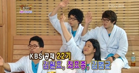 2011년 ‘개그콘서트’를 대표하던 개그맨 김원효-김준호-정범균-최효종이 G4라는 이름으로 ‘해피투게더’에 투입됐습니다. 그리고 더 널찍해진 사우나로 장소를 옮겼습니다. 당시 동시간대 경쟁 프로그램이었던 MBC ‘주병진의 토크 콘서트’와 불꽃 튀는 경쟁을 하고 있었기에 시청자들의 관심은 커졌습니다.