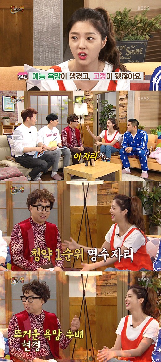 ‘해피투게더’는 다시 답을 찾기 위해 나섰습니다. 다시 토크에 중점을 뒀고 여자 MC 엄현경을 투입해 변화를 꾀했습니다.